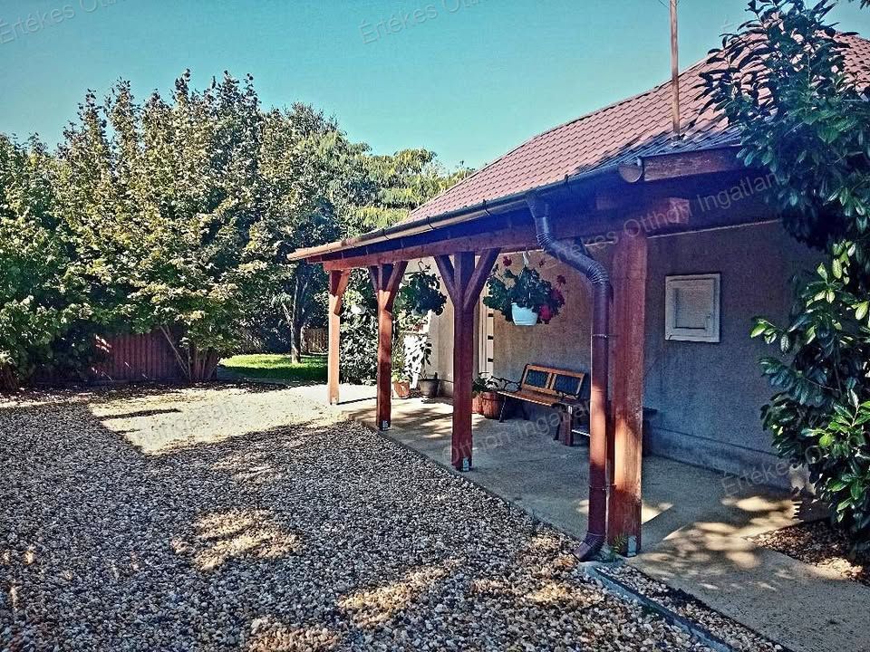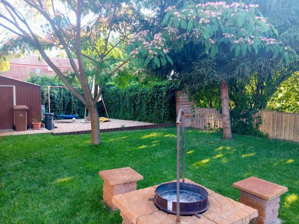 -916 m²-es telek, melynek egyik fele igényesen parkosított és dekorkavicsos pihenőkert, a másik fele pedig gondozott konyhakert