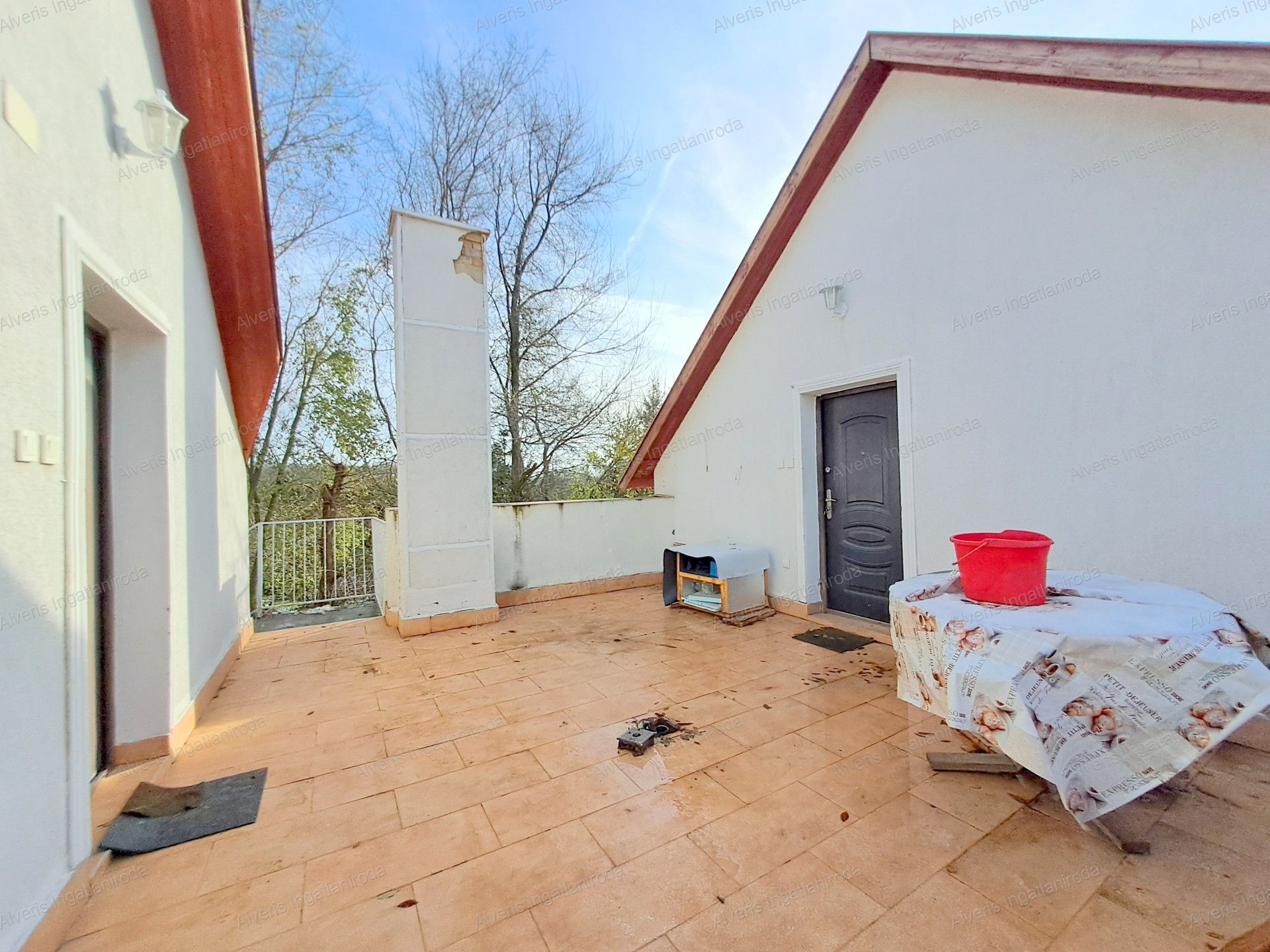 A különleges adottságokkal rendelkező otthon értékes fáival, magával ragadó őshonos kerti növényzetével fogadja érdeklődő látogatóit. A fűtött kerámialapokkal ellátott, téli kertté alakítható nagyméretű teraszon át érkezünk a tágas előszobába, ahol amerikai konyhához kapcsolódó nappali, társalgó, 3 szoba, 2 fürdőszoba, spájz, mosókonyha helyezkedik el a földszinten. Az alagsor két részre osztott szigetelt pincehelyisége wellness és fitness részleg kialakítására is kiválóan alkalmas. Külső lépcsőkön jutunk a felső szintre, ahol két stúdió apartman jelleget öltő 36 m-es szoba található saját konyhával és fürdőszobával. A két szoba között egyedi módon megtervezett padlófűtéssel ellátott terasz helyezkedik el, amely akár üvegezett fedéssel zárt, impozáns, modern élettérnek alakítható. A telken az ingatlan mögött, található egy 7×6 méteres, 42 m2 alapterületet magában foglaló közművekkel ellátott sávalap, amely dupla garázs, fedett terasz, filagória, nyári lak, egyéb lakóépület alapjául szolgálhat.