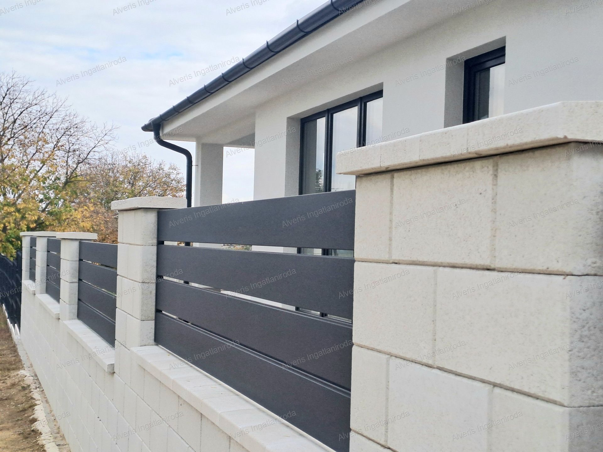 - modern, színezett zsalukő kerítésrendszer