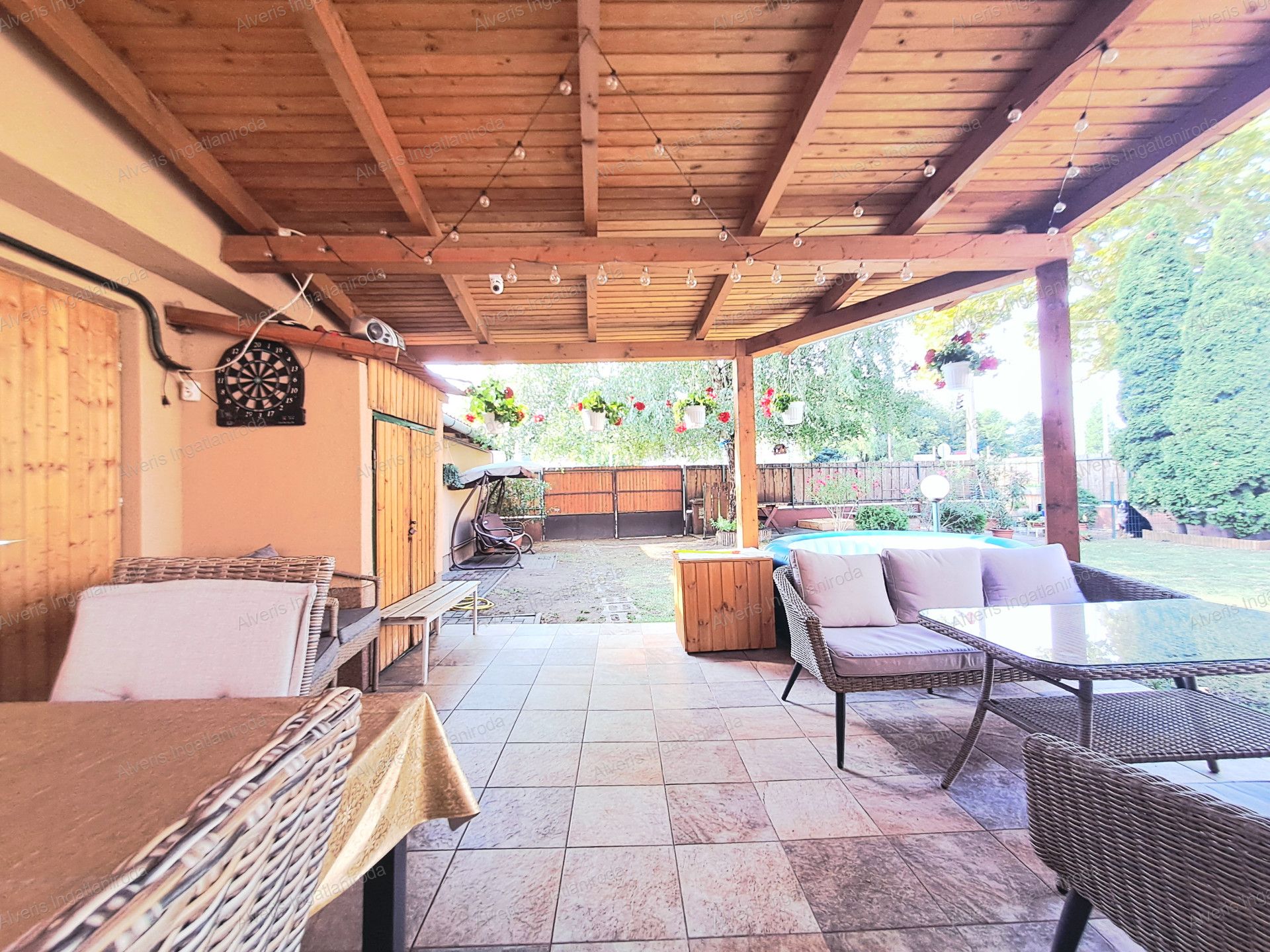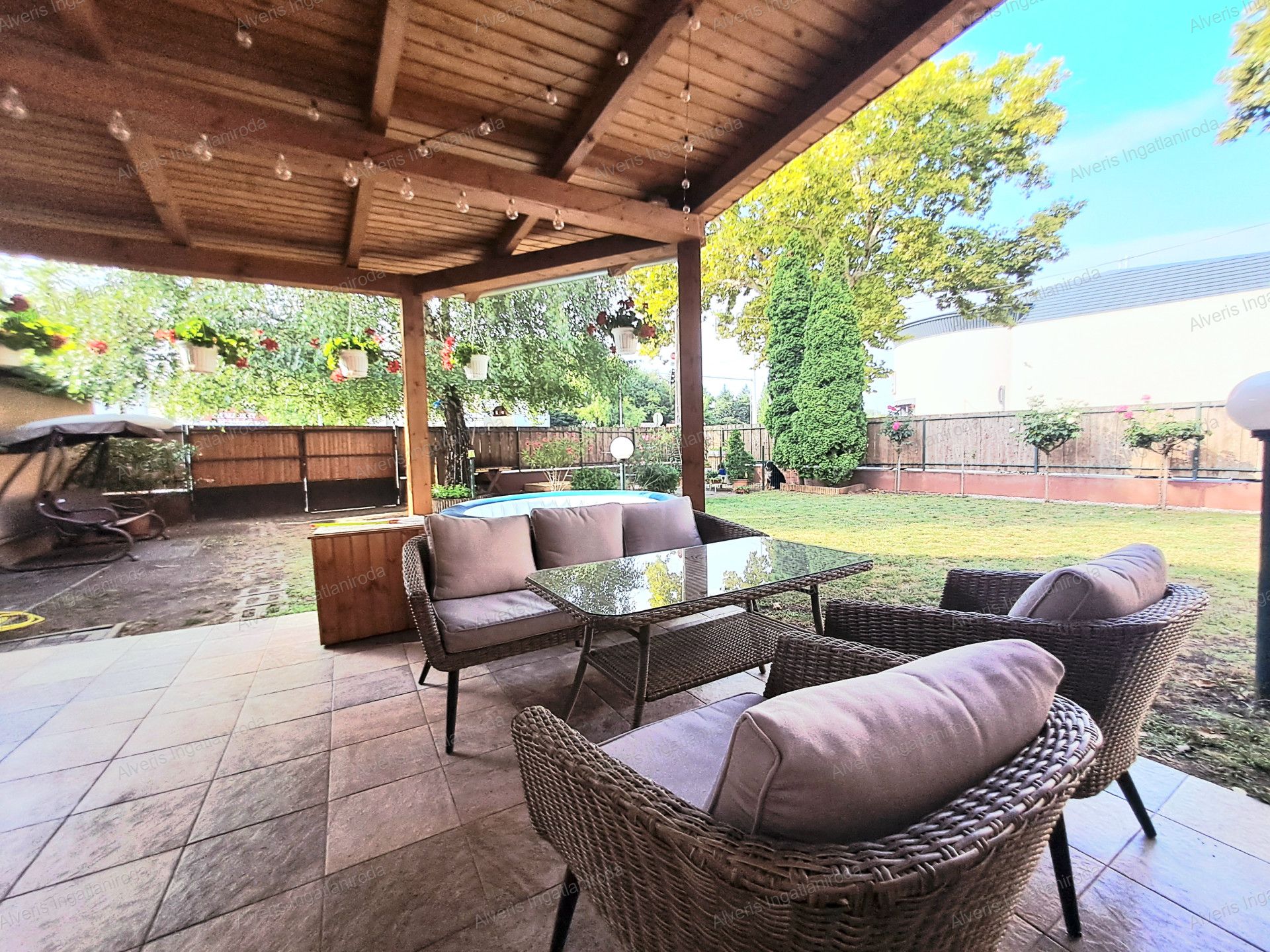 A ház minden részlete az átgondolt tervezés és a klasszikus értékek tiszteletéről árulkodik. A tágas, világos nappali közvetlen kapcsolatban áll a 30 m²-es fedett terasszal, amelyből egy gondosan parkosított, 460 m²-es kert tárul elénk. A kertben nyári konyha, igényesen felújított melléképület és többfunkciós tárolók teszik teljessé az otthon nyújtotta kényelmet.