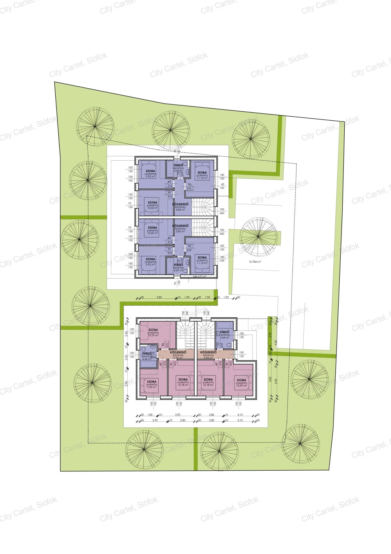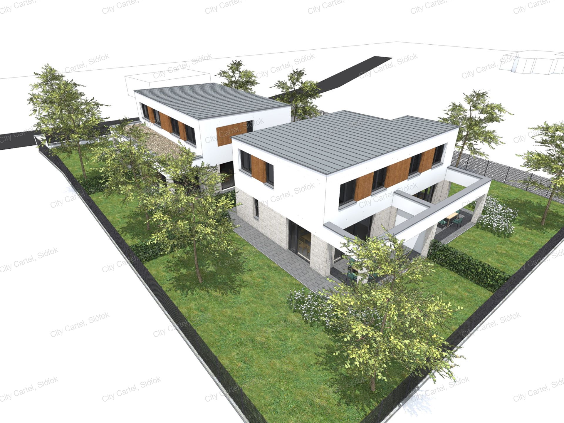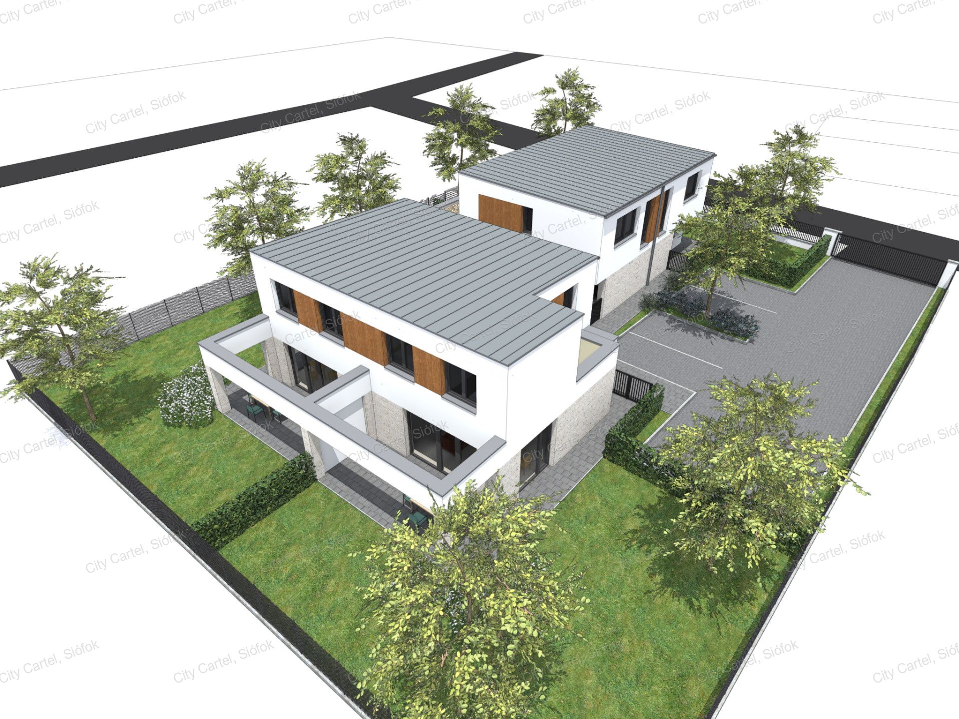 A City Cartel Ingatlaniroda eladásra kínál Siófok, Foki-hegyen egy csendes zsákutcájában, egy 75 nm2 -es, új építésű, két szintes, modern stílusú iker családi házat,földszinti és emeleti egyenként 13- 13 m2-es terasszal, saját kertkapcsolattal, kulcsrakész állapotban, 2026. decemberi átadással.