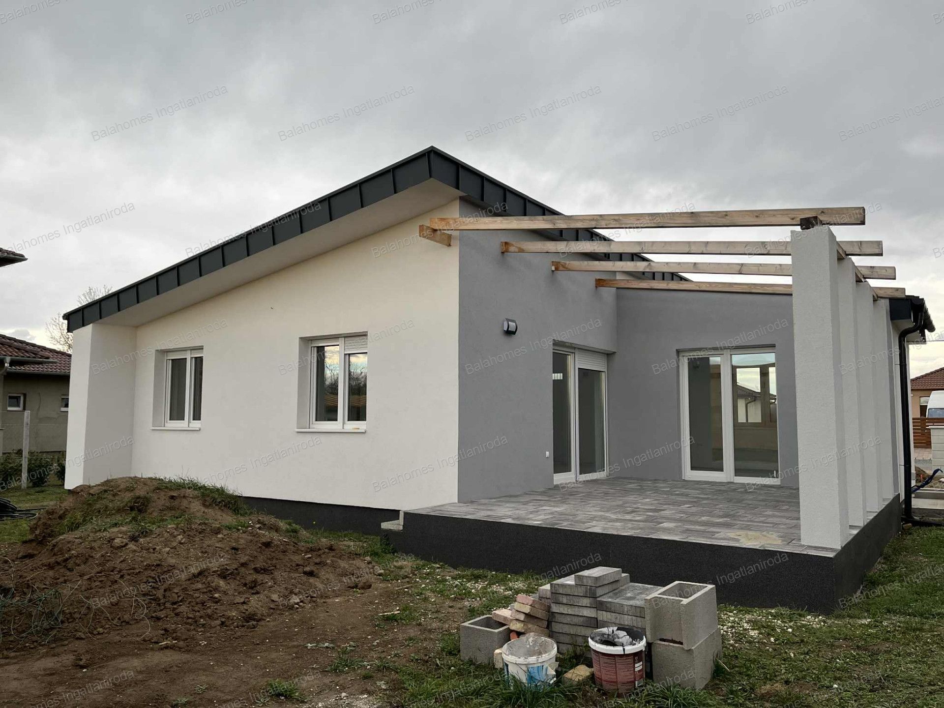 A BALAHOMES INGATLAN megvásárlásra kínálja a 725700056-os számú, új építésű, 74 m2-es, 381 m2-es telken lévő, kiváló tulajdonságokkal bíró, új építésű CSALÁDI HÁZAT.