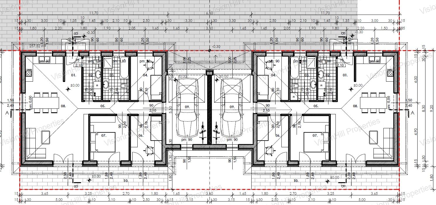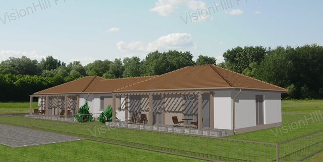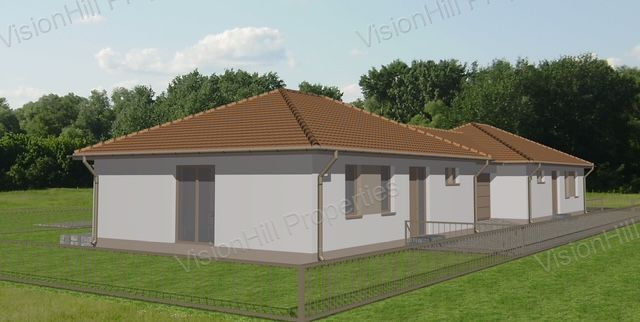 Zsámbék legújabb, nyugodt környezetben elhelyezkedő lakóövezetében kínálunk megvételre 103m2-es, kiváló elrendezésű, földszintes, nappali + 3 szobás, garázzsal rendelkező ikerház-lakásokat, melyekhez egyenként 430 m²-es telekrész tartozik.