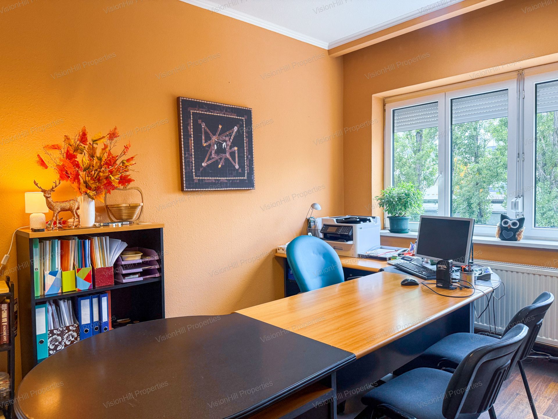 A folyosón és az irodán belül egyedi tervezésű, kulcsra zárható, minőségi fából készült beépített szekrények találhatók, amelyek óriási tárolási lehetőséget biztosítanak. Két lépcsőben készültek: az első ütem 2000-ben zajlott, amikor a folyosói szekrénysorral párhuzamosan az irodában is kialakításra került egy szekrénysor. Emiatt falbontás is történt az irodában. Majd 2003-ban ennek a szekrénysornak a folytatása is elkészült. 2023-ban új konyhabútort kapott az iroda, és a konyhában található nagy beépített szekrény frontjait is kicserélték. Az iroda utoljára kb. 5–6 éve volt festve. 2008.-ban új greslap került az előszobába és a konyhába, a szobába pedig új parketta, továbbá biztonsági ajtó és belső ajtó csere is történt.