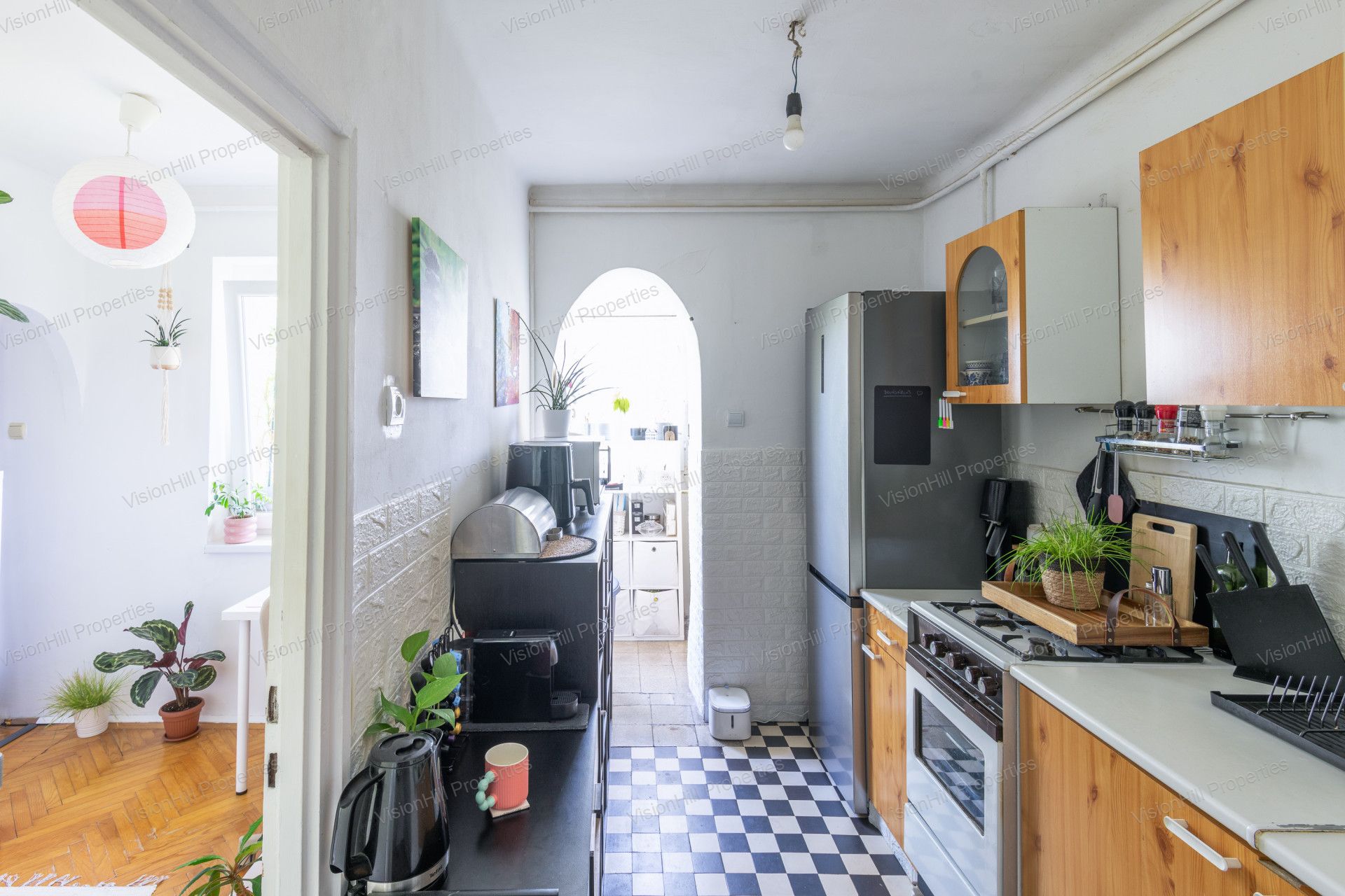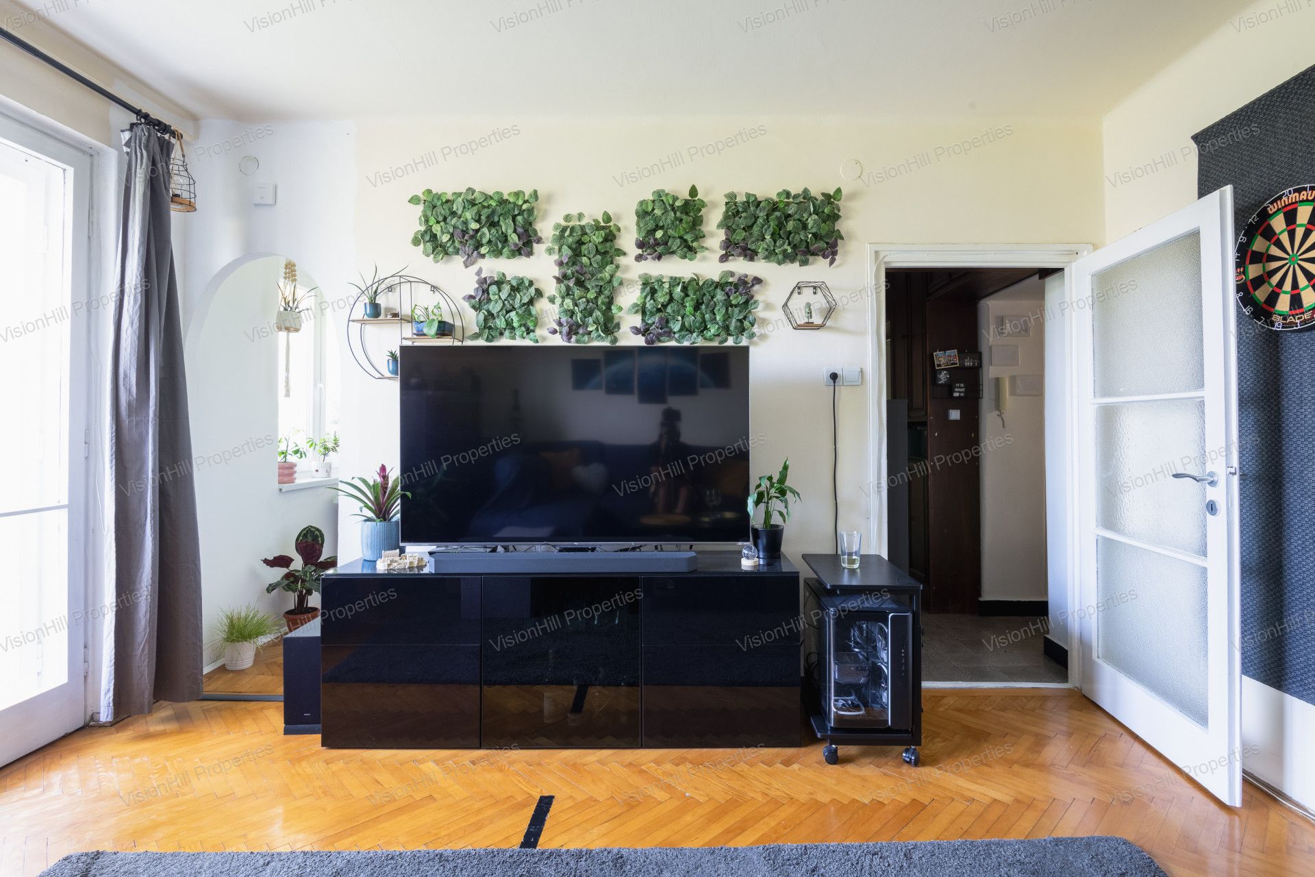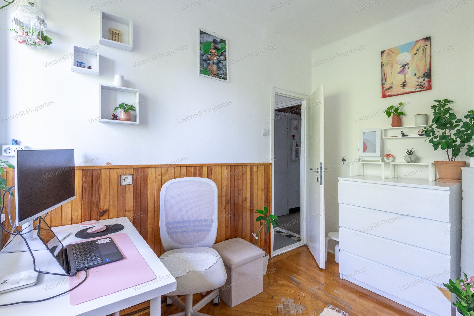 A lakás 2 szobával és 1 félszobával rendelkezik (nappali + háló + félszoba). A lakás elhelyezkedése kiváló, minden ablak kertre néz,távol az utcától. A lakás minden szobája világos a bőséges természetes fénynek köszönhetően, és a jól elhelyezett ablakoknak hála könnyedén átszellőztethető. A WC és a fürdöszoba külön helyiségekben találhatók. Az előszobai folyosón két nagyméretú beépitett szekrény nyújt bőséges tárolási lehetöséget. A nappali, a félszoba, a konyha és a fedett loggia keleti tájolású, délelötti benapozással, a hálószoba nyugatra néz. Melegvízről a tavaly cserélt villanybojler gondoskodik. A fútés két 2020-ban vásárolt gázkonvektorral történik, a szobákban tavaly műanyag ablakok kerültek behelyezésre. A nappaliba 2025 júniusában hütő-fűtő klímát szereltettek be a tulajdonosok. A 7 m2-es fedett loggia a kertre és a városra néz, kiváló hely a reggeli kávéhoz vagy pihenéshez. A loggia teljesen privát, sehonnan nem lehet belátni.