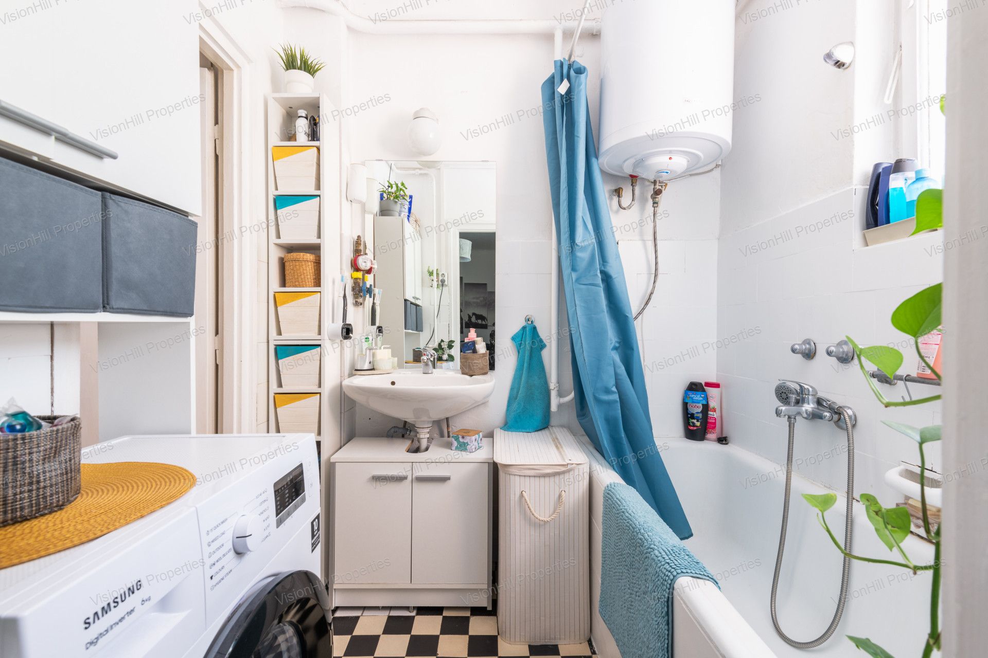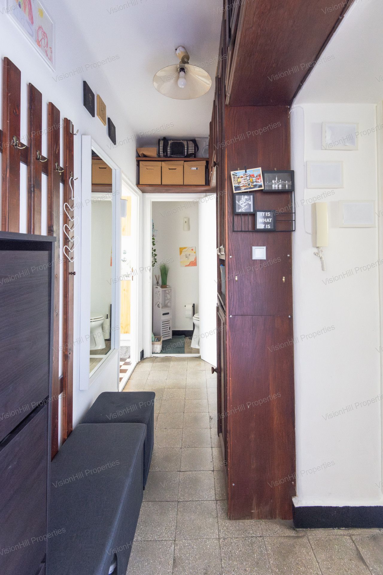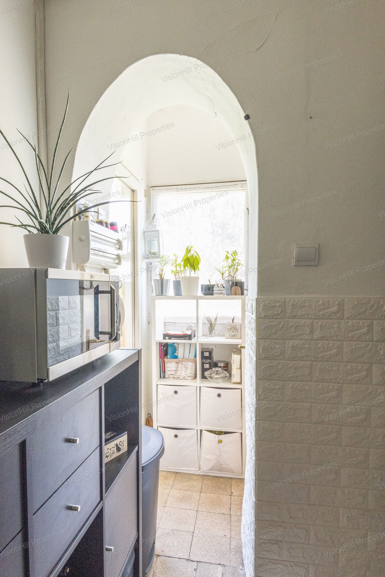 A lakás 2 szobával és 1 félszobával rendelkezik (nappali + háló + félszoba). A lakás elhelyezkedése kiváló, minden ablak kertre néz,távol az utcától. A lakás minden szobája világos a bőséges természetes fénynek köszönhetően, és a jól elhelyezett ablakoknak hála könnyedén átszellőztethető. A WC és a fürdöszoba külön helyiségekben találhatók. Az előszobai folyosón két nagyméretú beépitett szekrény nyújt bőséges tárolási lehetöséget. A nappali, a félszoba, a konyha és a fedett loggia keleti tájolású, délelötti benapozással, a hálószoba nyugatra néz. Melegvízről a tavaly cserélt villanybojler gondoskodik. A fútés két 2020-ban vásárolt gázkonvektorral történik, a szobákban tavaly műanyag ablakok kerültek behelyezésre. A nappaliba 2025 júniusában hütő-fűtő klímát szereltettek be a tulajdonosok. A 7 m2-es fedett loggia a kertre és a városra néz, kiváló hely a reggeli kávéhoz vagy pihenéshez. A loggia teljesen privát, sehonnan nem lehet belátni.