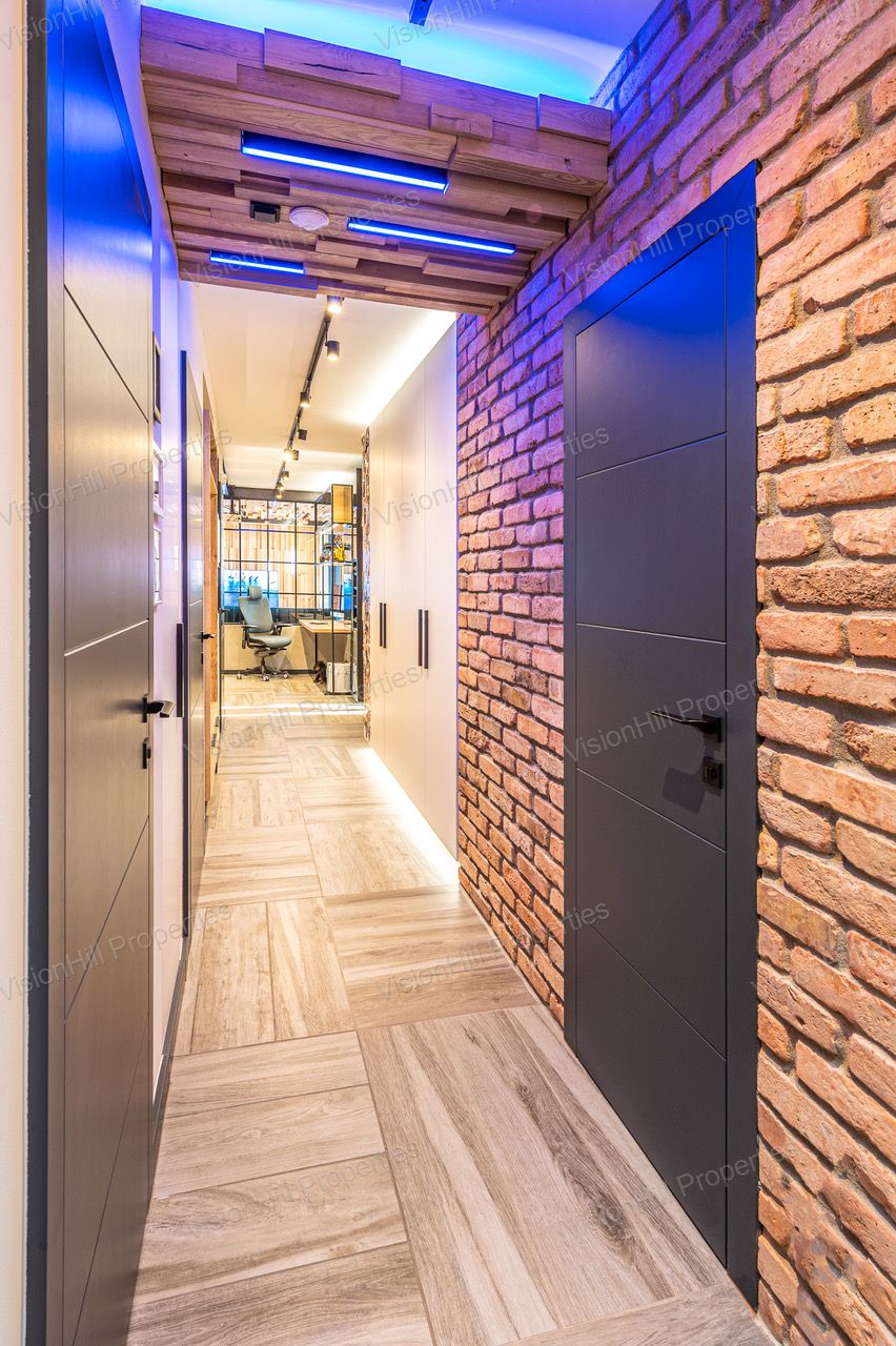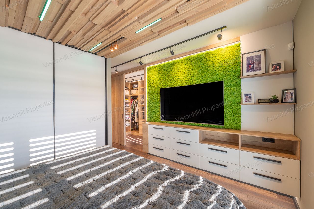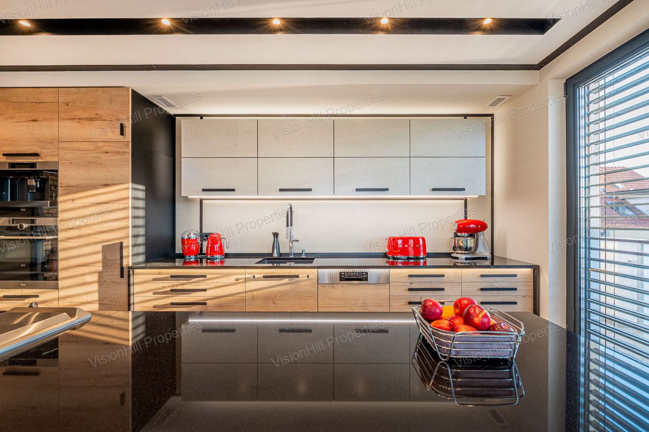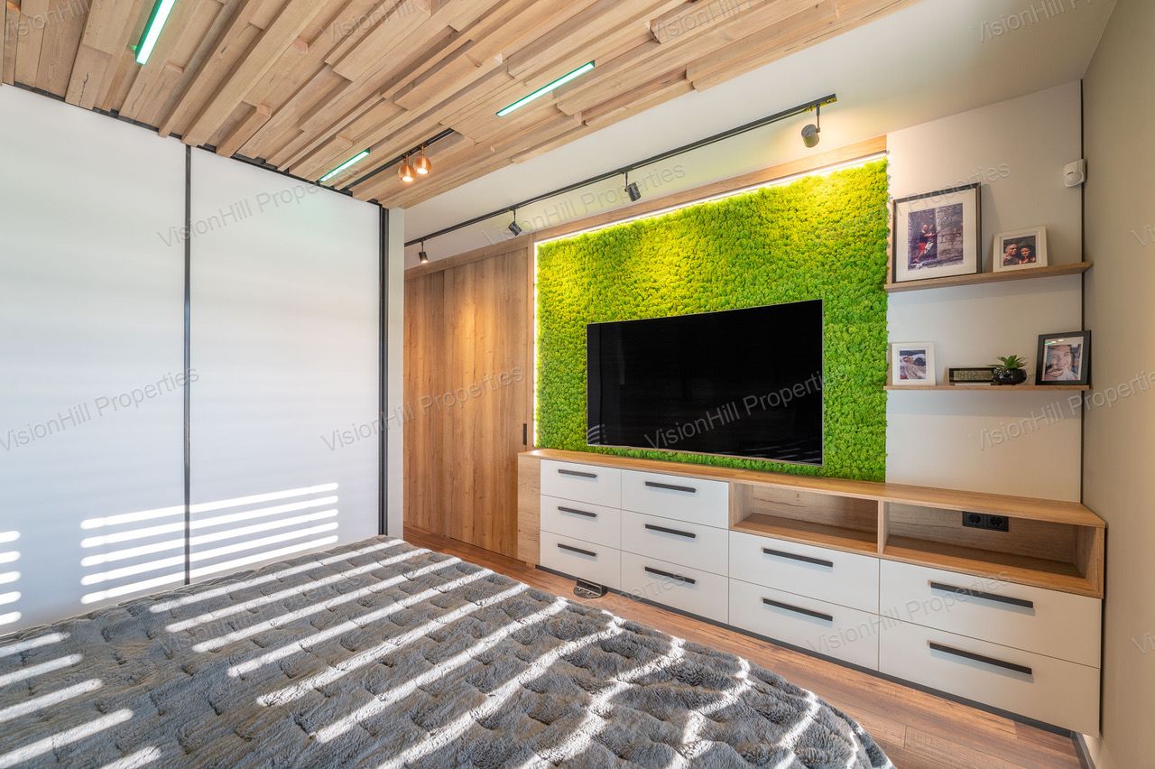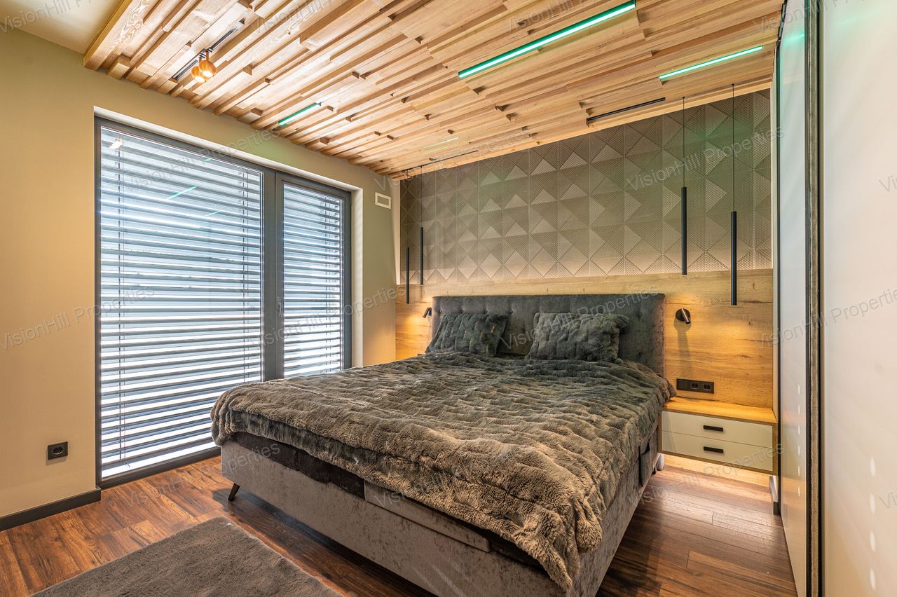 -Egyedileg gyártott, prémium beépített bútorok, gránit munkalapok, fémvázas szekrények, izlandi zuzmó falpanelek, fa lamellák a nappaliban, folyosón, fürdőszobában, hálószobában