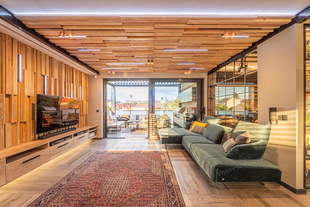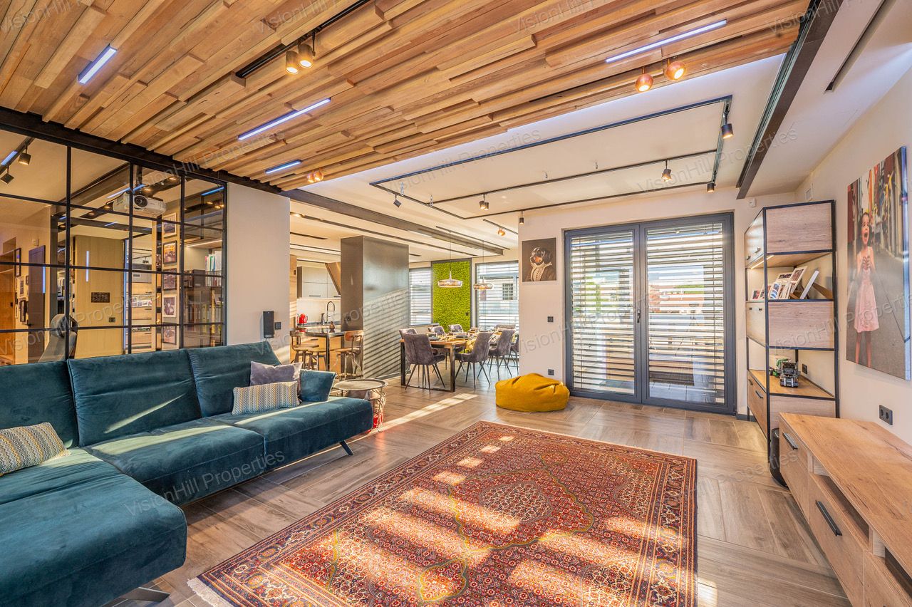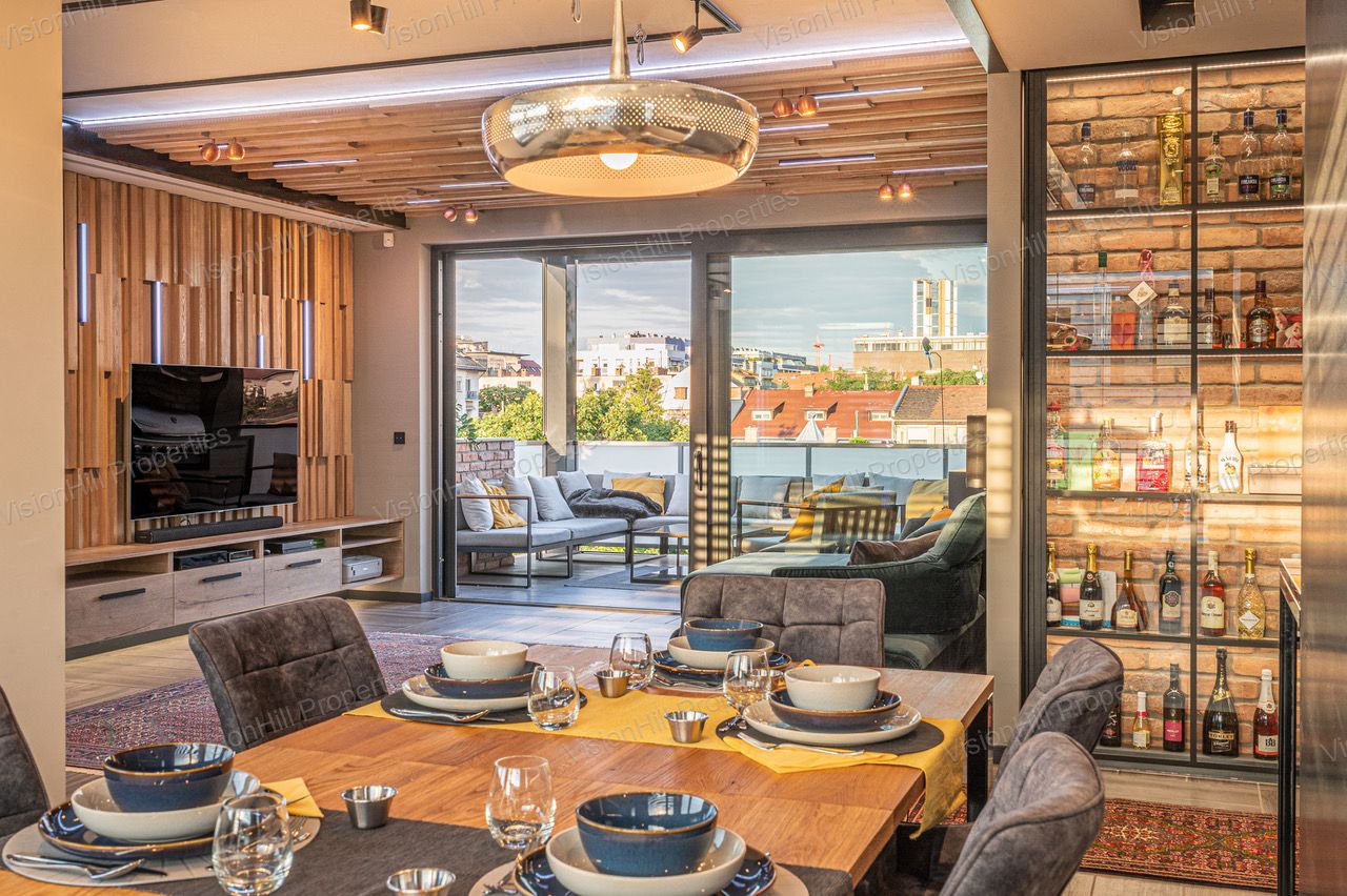 Eladó XI. kerületben, Újbudán egy 2022-ben épült, 14 lakásos exkluzív társasház legfelső szintjén található New York Loft stílusú luxuslakás.