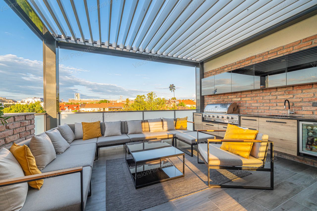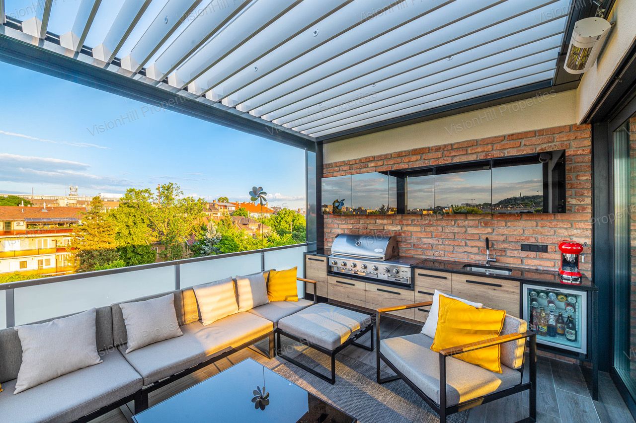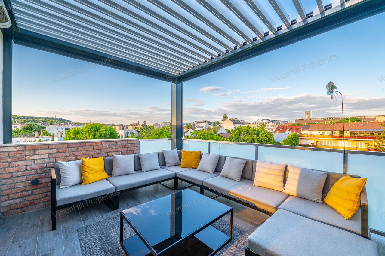 A tágas belső terek, a panorámás teraszok és a prémium felszereltség teszik ezt az ingatlant Újbuda egyik legkülönlegesebb penthouse lakásává.