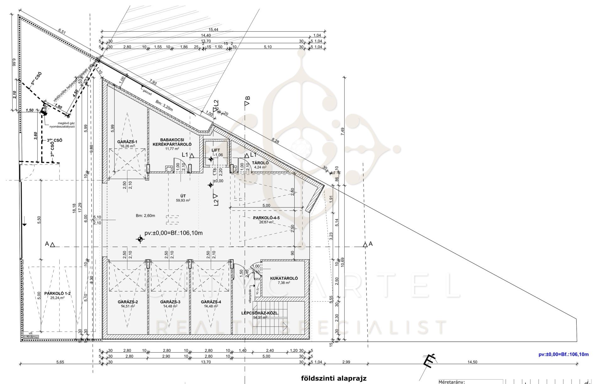 A parkolásról fedett gépkocsibeálló gondoskodik, mely kötelezően megvásárolandó 8.000.000 Ft-ért, továbbá 1.5 nm-es tároló 2.000.000 Ft áron. A házhoz tartozik nyitott felszíni zár tparkoló is 4.000.000 Ft -ért.